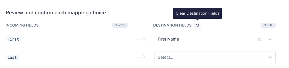 Think we got it wrong? Use the round arrow in the top right corner to clear all mapping suggestions automatically.