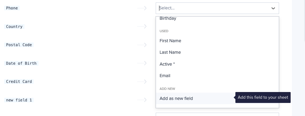 ⚠ Any source fields that are not mapped to a destination field will be excluded from the import.