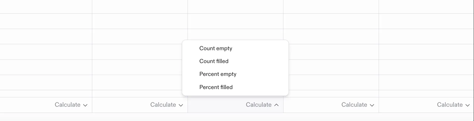 Once enabled, you’ll be able to calculate the following from a quick selection menu at the bottom of each column:
