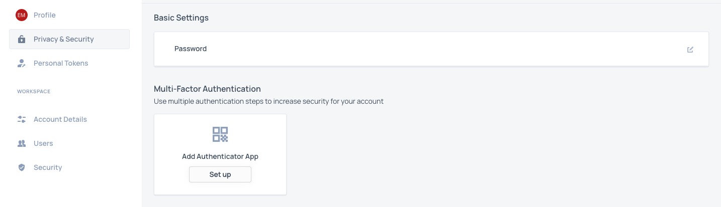 To reset your password from within the Flatfile Dashboard, click on the 3 dots menu at the bottom left of the Dashboard, then click "Settings". Under the "Profile" header, click "Privacy and Security".
